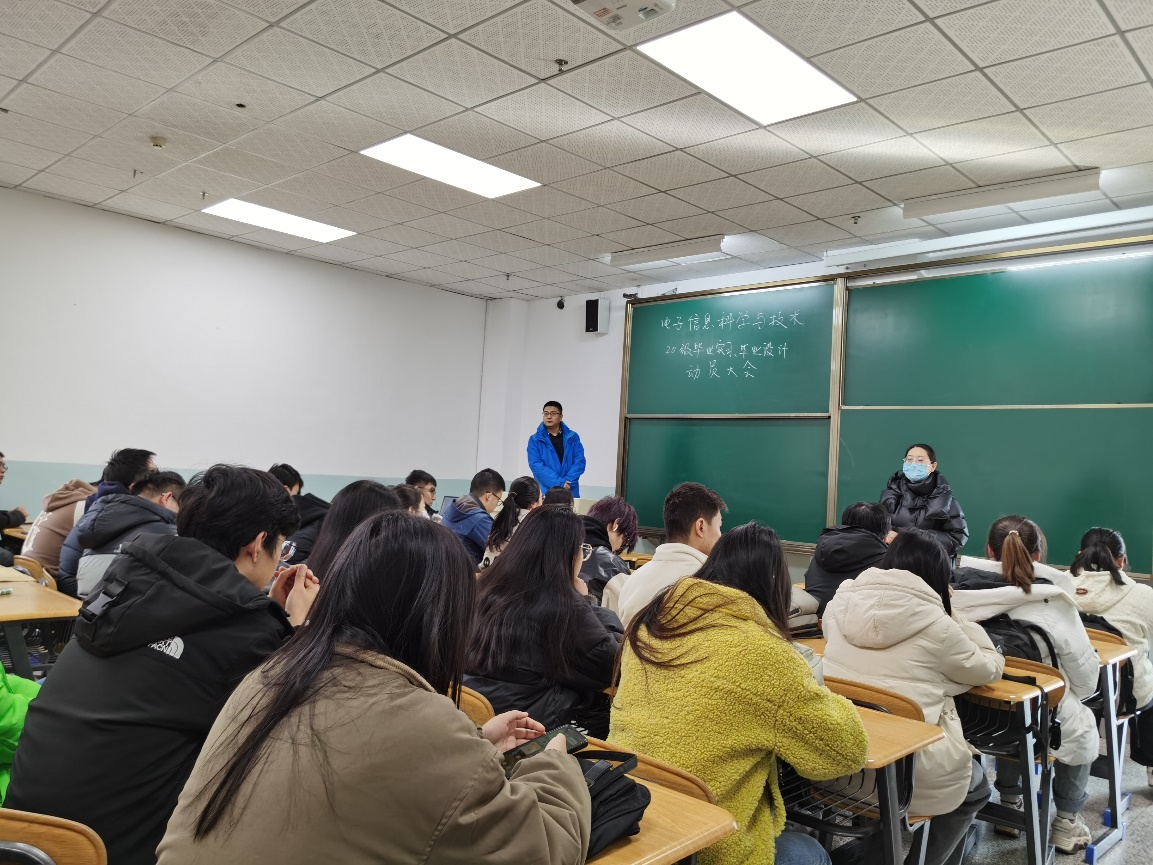 2024年1月11日11点45分,电信工程a片网电子信息系在敦雅楼C102召开了2020级学生的毕业实习和毕业设计动员会,电子系主任黄玲老师,以及电子系刘昀强老师、王艳周老师、漆宇晟老师参加会议,会议由刘昀强老师主持。