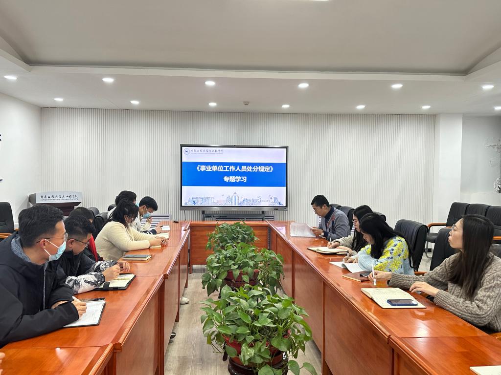 为进一步加强党风廉政建设,严肃教师队伍工作纪律,规范教师行为,2023年12月5日-12日,电信a片网采取集中与分散相结合的方式,多渠道组织开展了《事业单位工作人员处分规定》集中学习活动。
