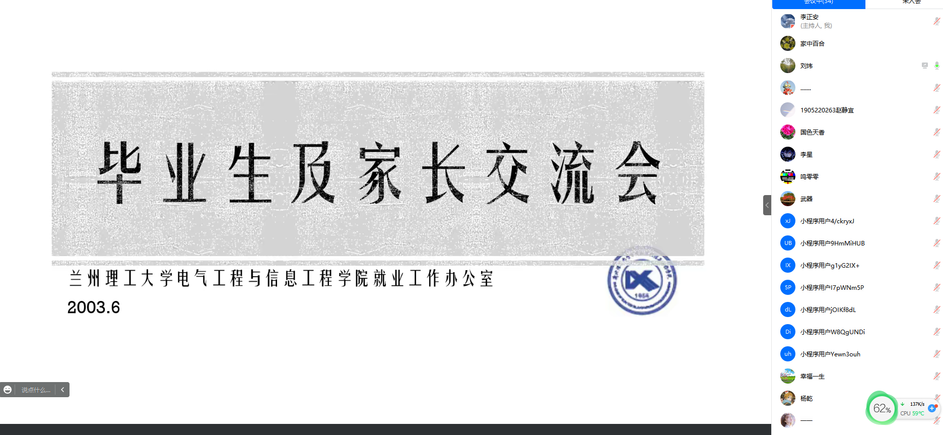 为深入学习贯彻习近平新时代中国特色社会主义思想,落实“三抓三促”行动,进一步扎实推进a片网稳就业、保就业,高质量完成2023届毕业生就业工作,7月1日晚,电信a片网召开2023届未就业毕业生家长线上交流会。a片网党委副书记刘炜、就业辅导员李正安、a片网2023届未就业毕业生及家长参加会议。