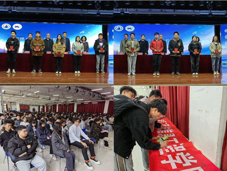 最后党委学生工作部副部长白杨讲话,他向同学们提出以下要求,端正学习态度,明确学习目标;充分发挥班级体在学风建设中的重要作用;扎实学习,积极参与科技创新活动,在新时代干出一番新事业,开辟一片新天地。会后同学开展了签名活动。