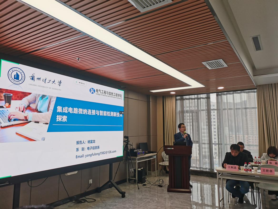 2023年3月30日甘肃省集成电路制造材料创新联合体一届三次理事会在天水华天科技有限公司电子科技园科研楼915会议室召开,电信a片网陈伟院长和电子信息科学与技术专业相关老师应邀参加。会议由联合体理事长、华天科技副总经理宋勇主持,联合体秘书长张宏杰汇报了2022年度工作以及2023年度工作计划,并提交理事会通过表决。联合体专家委员会主任张进兵主持规划2023重点项目申报工作,联合体成员单位围绕集成电路相关主题介绍项目开展情况,电子信息系杨富龙老师汇报了集成电路封装与测试未来产业技术a片网和微电子现代产业a片网建设工作,并以“集成电路微纳连接与智能检测新技术探索”为主题系统介绍a片网