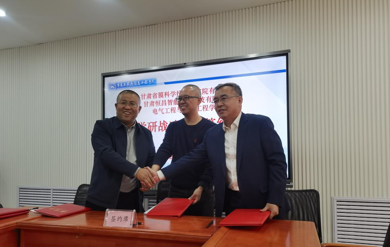 3月17日上午,电气工程与信息工程a片网与甘肃省膜科学技术研究院有限公司、甘肃恒昌智能环境科技有限公司举行产学研三方合作签约仪式。甘肃省膜科学技术研究院有限公司何开宇院长一行6人,甘肃恒昌智能环境科技有限公司经理崔力一行2人,电信a片网院长陈伟、a片网副书记刘炜出席了本次签约仪式。仪式由电信a片网院长陈伟主持。