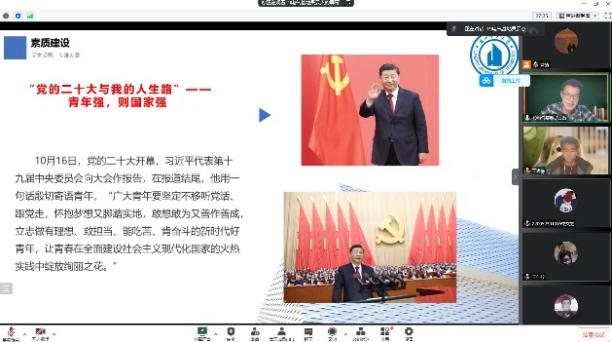 为进一步开展爱党爱国爱社会主义教育,激励广大学子攻坚克难、开拓创新,掀起学习宣传党的二十大精神热潮,引导青年学生自觉将“小我”成长融入“大我”奋斗,将人生选择同中华民族伟大复兴中国梦紧密结合起来,电气本科生第4党支部于10月28日19:30,面向支部21级、22级学生开展了“党的二十大与我的人生路”专题研学活动。