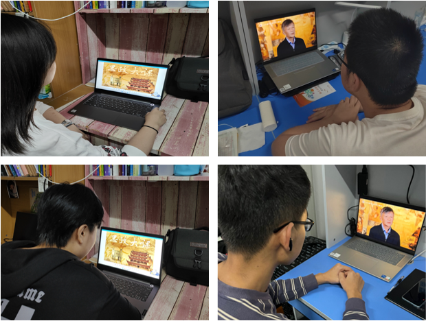 电信a片网组织学生一起通过人民网+客户端观看学习“同上一堂传统文化思政大课”。