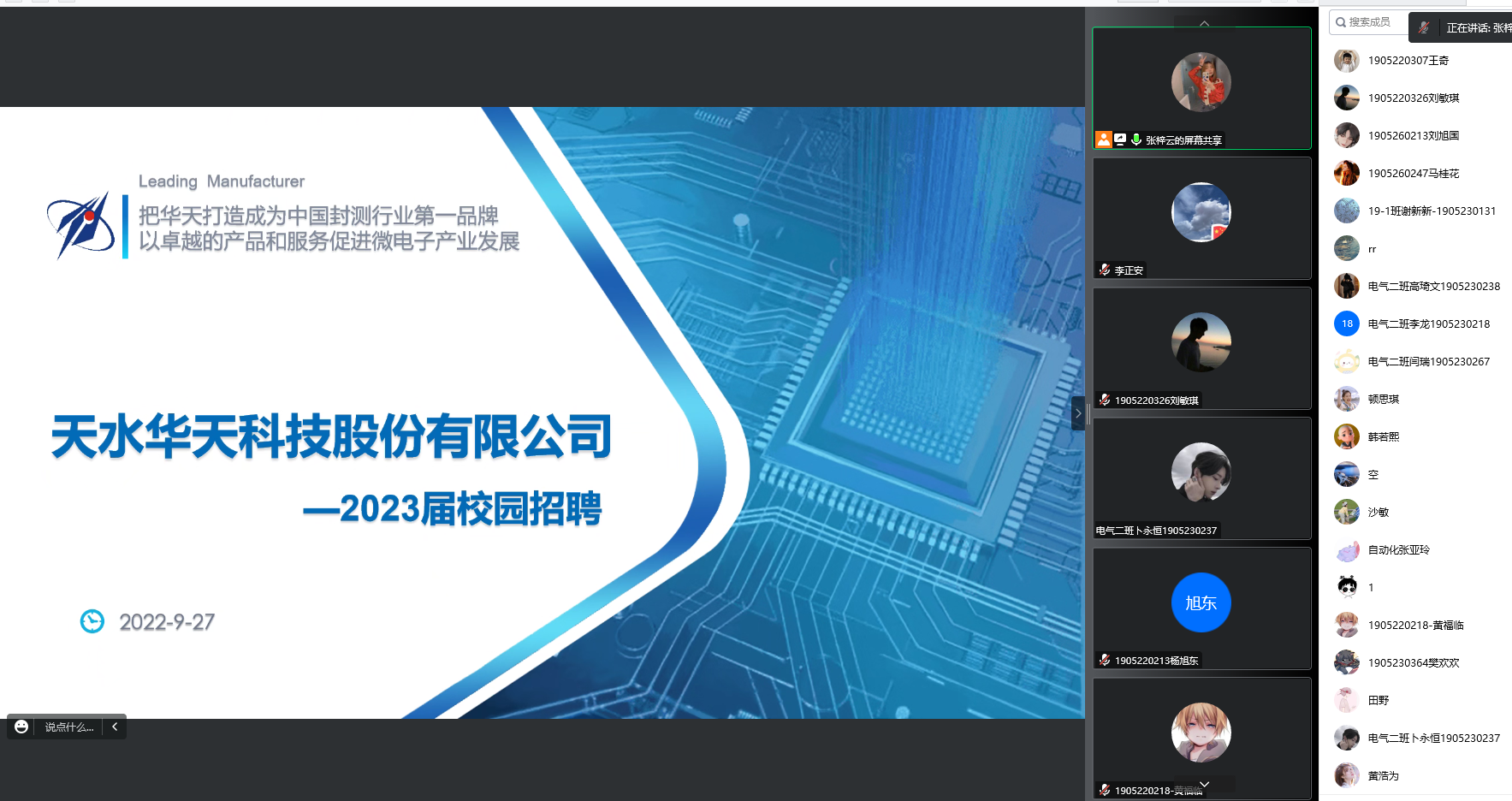 为调动电信a片网2023届毕业生就业积极性,拓宽就业渠道,帮助学生成功就业,近日电信a片网邀请海康威视、天水华天科技等就业基地单位在腾讯会议平台举行线上就业宣讲会。