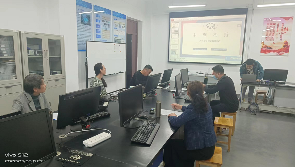 答辩采用导师回避制,包括学生汇报、教师提问、学生答辩、答辩组评定等环节。答辩过程中,学生采用PPT讲解形式,围绕任务内容、设计方案、技术路线、当前工作进展以及下一步的计划进行详细阐述。答辩组老师围绕学生设计(论文)中存在的问题提出了指导性意见和建议,促使学生更好的完成后期任务。