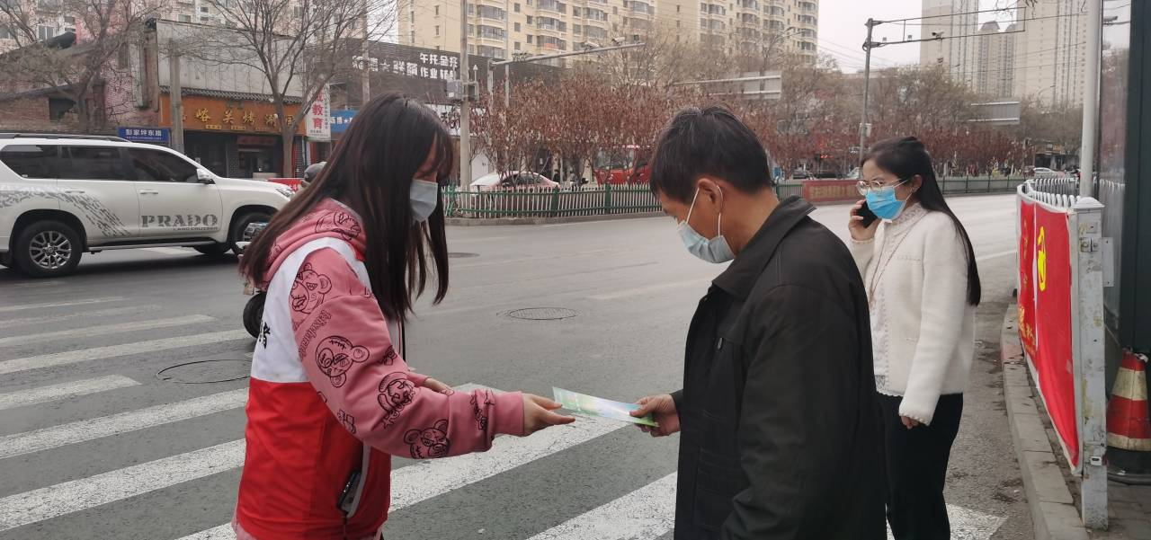 3月5日当天,青年志愿者们身着志愿服,携带毛巾、簸箕等卫生工具前往龚家湾社区开展街道卫生清扫和志愿文明岗值班。在龚家湾十字,同学们不怕脏、不排累满身干劲的打扫街面垃圾,对两侧的文化牌进行擦拭,展现了志愿者们吃苦耐劳、阳光向上的精神状态。在担任交通指挥志愿者时,同学们挥动手中的小红旗,示意居民按照交通信号灯的提示文明穿越马路,同时向行人分发文明出行宣传册,引导市民遵守交通法规,助力兰州文明城市建设。