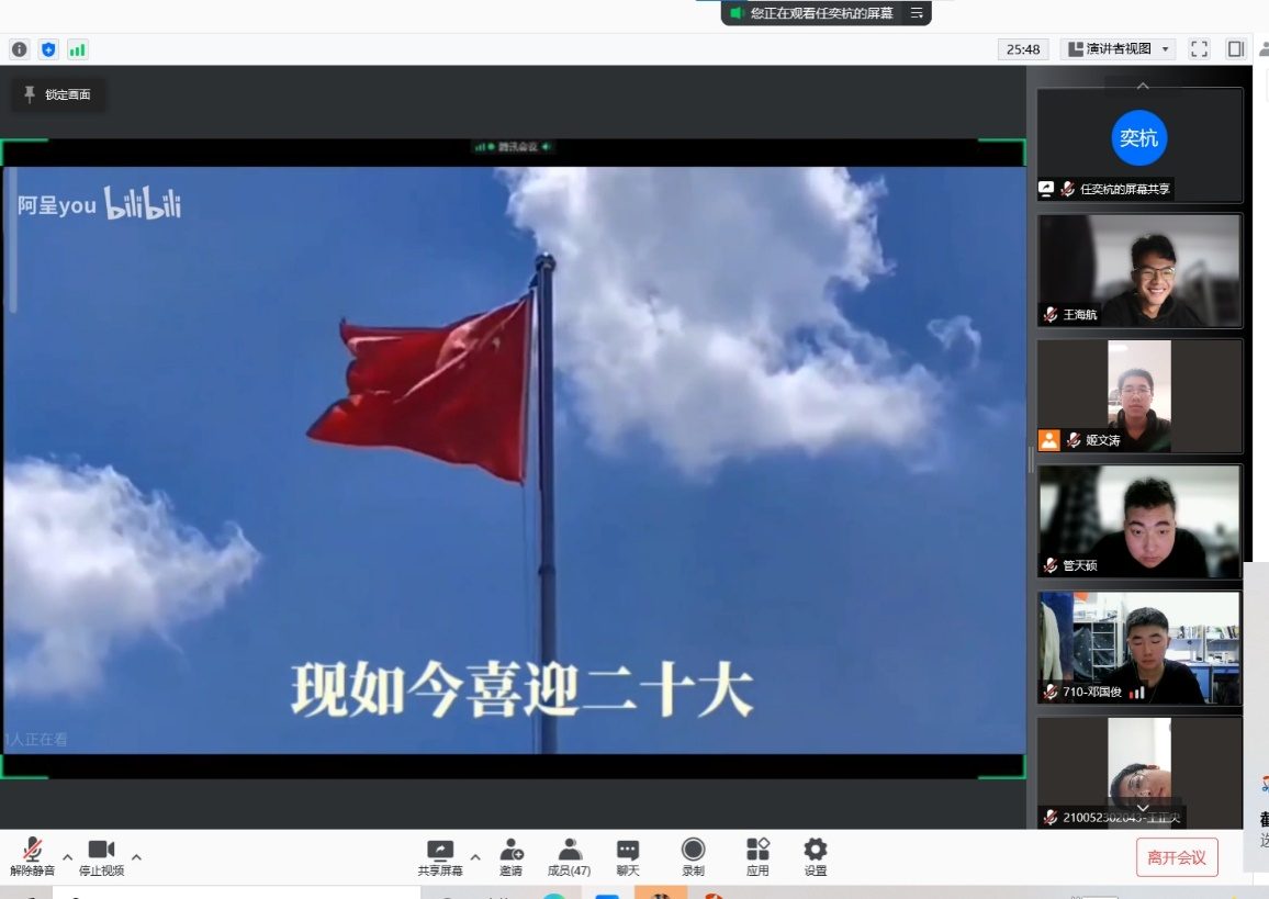 各基层团支部组织开展了形式多样的团日活动,其中20级电气工程及其自动化1班团支部通过PPT讲解共学的方式,从永远跟党走、奋进新征程等四个板块引导同学们深刻领悟“两个确立”的决定性意义。20级自动化3班团支部通过线上观影的方式组织班级同学学习了党的十八大以来党和国家事业取得的历史性成就、发生的历史性变革。同学们表示将时刻牢记总书记对青年的关怀与寄语,牢记“青年一代有理想、有担当,国家就有前途,民族就有希望”。