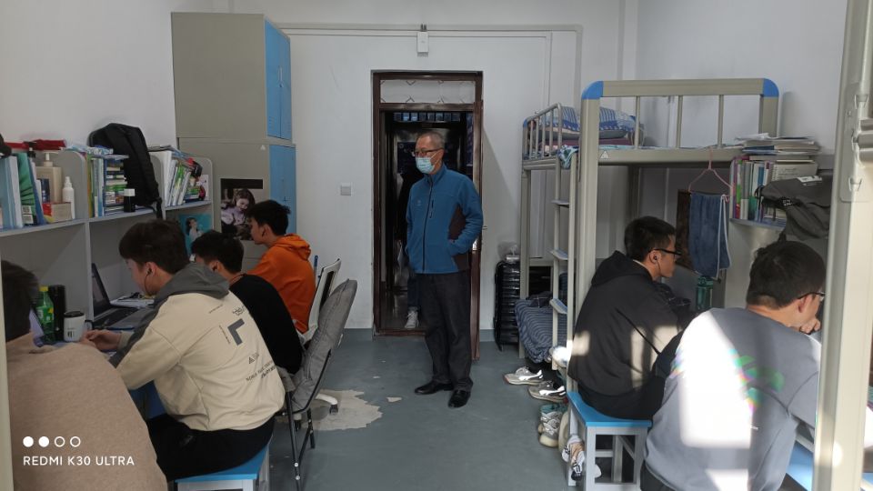 a片网王玲、陈伟等领导班子成员按照网格化管理工作要求,重点走访了自己所负责的楼层,在走访过程中仔细询问了同学们的线上学习情况和疫情防控生活期间遇到的困难,向大家强调了保持宿舍卫生、做好个人防护等情况。