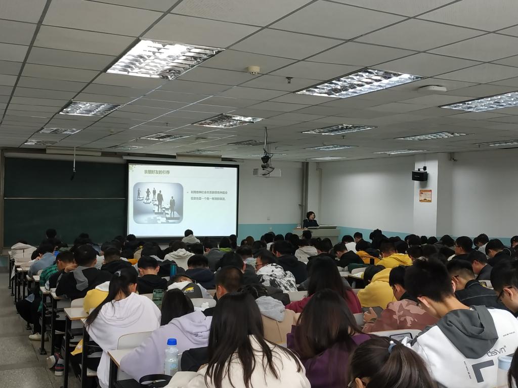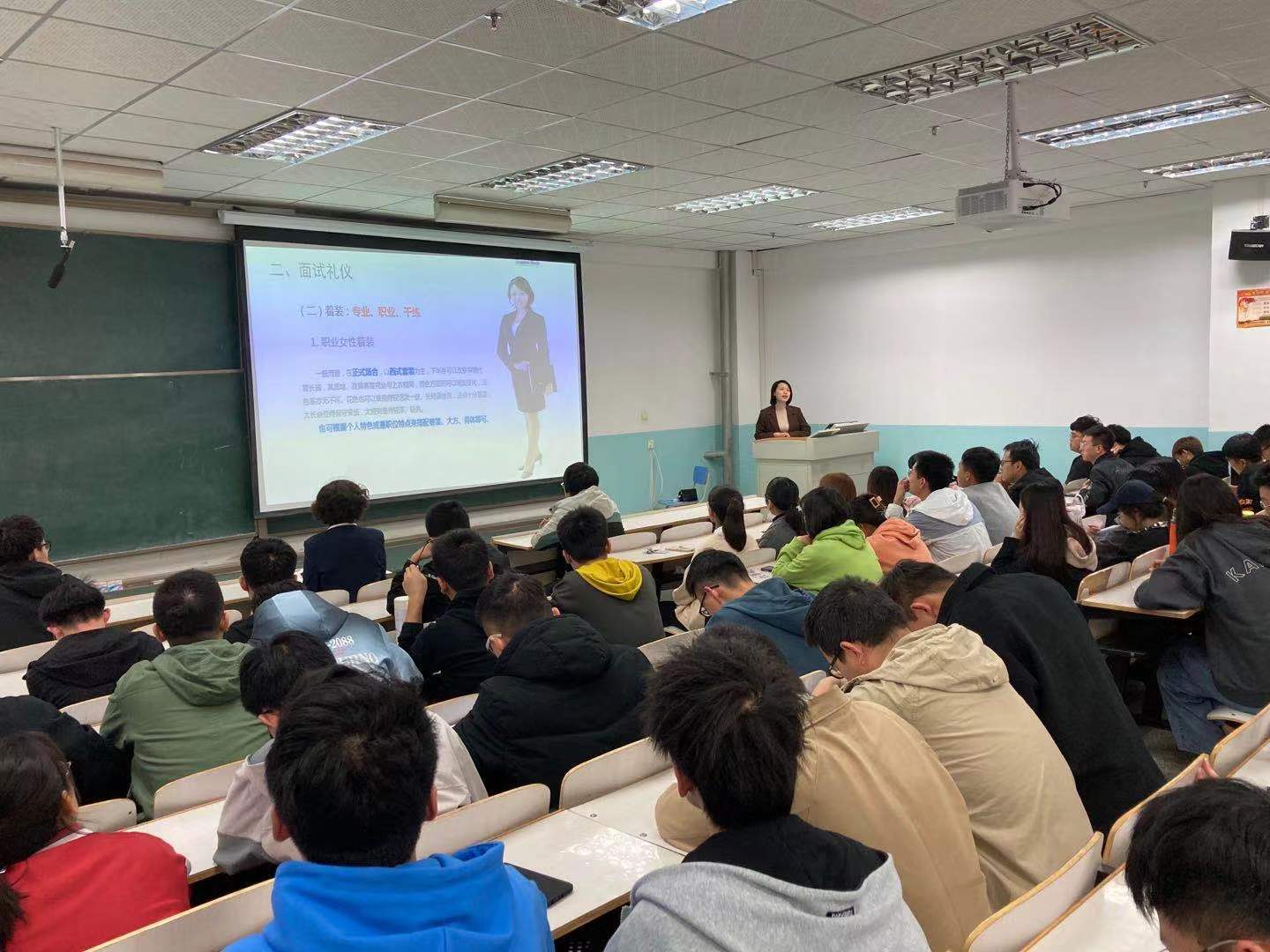 马文静老师从面试准备、信息收集、心态调整、职业形象打造等几个方面对同学们进行了辅导。随后向同学们展示了求职过程中的进门礼仪、入座与离座礼仪、握手礼仪、语言表达、体态动作等。马老师以自身的职涯经验出发,解析了面试中可能遇到的各种情况,用现实案例提醒同学们要注意面试的禁忌行为,对求职全流程的精准分析和深入浅出的讲解,赢得了同学们热烈的掌声。