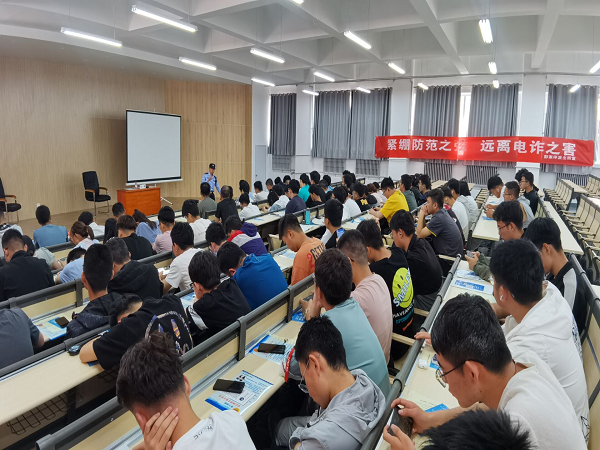 会议伊始,参会同学领取了《警方提醒:电信网络诈骗花样多》宣传彩页,倪鹏警长在主题教育中,向学生讲解了各类网络诈骗的类型、电信网络诈骗流程、电信网络诈骗的危害、电信网络诈骗的甄别与处理应对等诸多方面的内容。同时,组织全体学生讨论发生在身边的电信网络诈骗真实案例,并进一步结合典型案例,分析近期针对高校学生出现新型、迷惑性更强的电信诈骗手段。