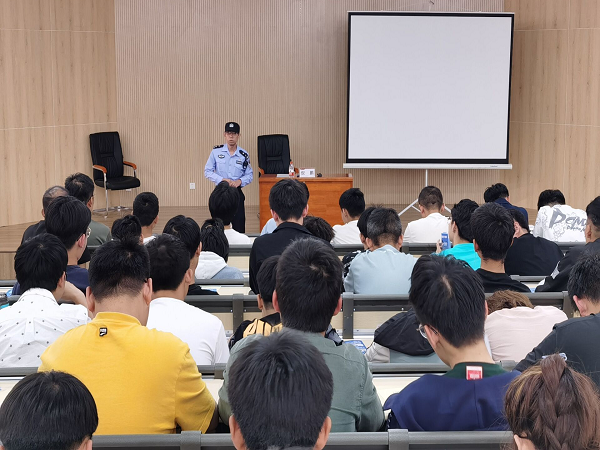 5月26号下午,电气工程与信息工程a片网在彭家坪校区求是楼D401教室举行了防范电信诈骗“三个一”主题教育活动,讲座由彭家坪派出所民警倪鹏主讲,电信a片网200多名学生参加讲座。