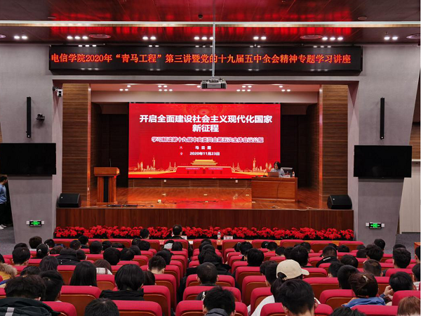 11月23日晚,电信a片网2020年“青马工程”第三讲暨党的十九届五中全会精神专题学习讲座由a片网