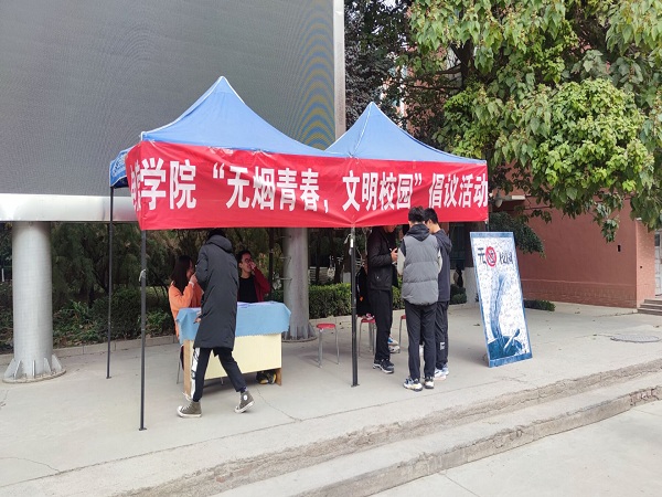为了营造文明和谐的校园环境,规范大学生日常行为,倡导无烟环境,共建美丽校园。11月1日以来,电信a片网于彭家坪校区红柳广场、东区3号公寓楼等公共区域陆续组织开展了“无烟青春,文明校园”主题宣传教育活动。