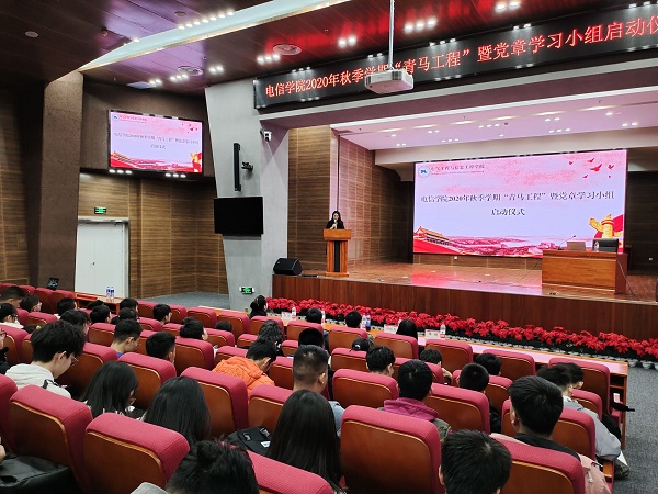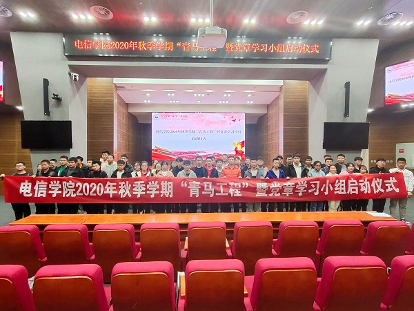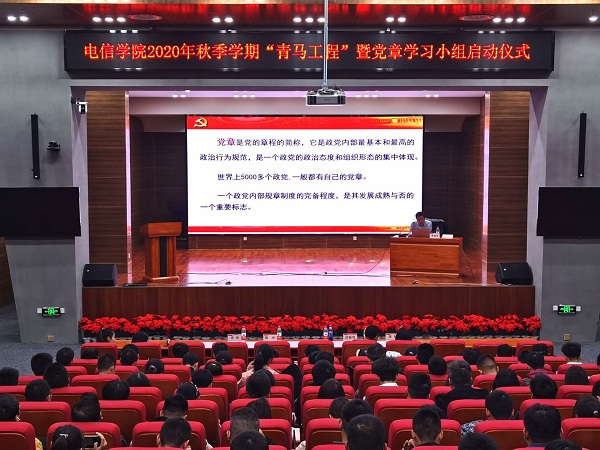 11月3日晚,电信a片网于彭家坪校区问鼎堂106报告厅举行了2020年秋季“青马工程”暨党章学习小组启动仪式。电信a片网党委朱毓杰副书记、a片网辅导员班振海、李婷、李扬老师、各学生党支部委员代表、2020年秋季学期全体“青马工程”学员、各党章学习小组负责人及学生代表近170人参加活动。启动仪式由a片网学生工作办公室主任陈冲老师主持。