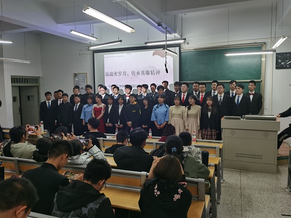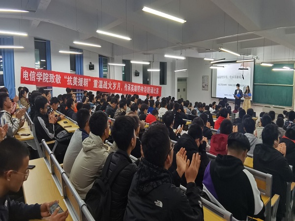 为了纪念中国人民志愿军抗美援朝出国作战70周年,大力弘扬爱国主义精神。电信a片网11月2日晚于彭家坪校区抒望楼405教室成功举办了“重温战火岁月,传承英雄精神”——“致敬抗美援朝”主题朗诵比赛,来自2020级的11支参赛队伍参加活动,a片网辅导员李扬、黄宁老师及三名学生代表组成评委。