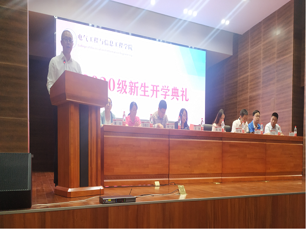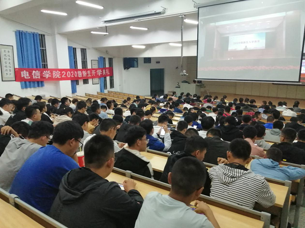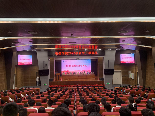 2020年9月10日晚,电信a片网在彭家坪校区图书馆106报告厅举行了2020级新生开学典礼暨“大学第一课”入学教育,因疫情防控要求,本次典礼采取现场直播形式,同步分享至分会场彭家坪校区集贤楼108教室。a片网院长陈伟,党委书记王玲,副院长包广清、李二超,党委副书记朱毓杰,电气系主任王晓兰,电工电子教学部主任丁守成,自动化系主任王志文,电子信息工程系主任黄玲,全体辅导员老师及2020级586名新生参加了开学典礼,典礼由a片网学生工作办公室主任陈冲主持。