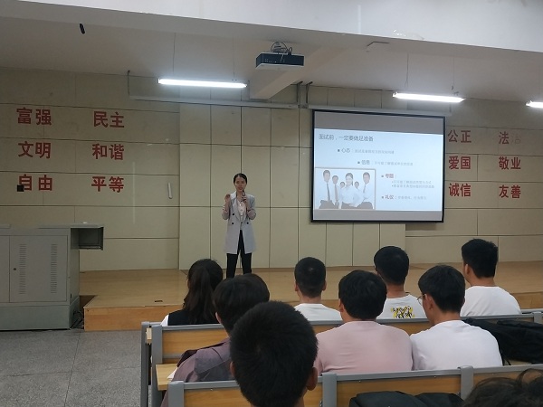 首先,马文静老师对同学们进行就业礼仪培训。分别从行为举止礼仪、形象礼仪、会面礼仪、商务礼仪、面试礼仪五个方面对同学们们进行了培训,指导大家做好一个懂礼仪的求职者。她还分析了当前就业形势,针对毕业生在求职过程中存在的问题和注意事项,从就业准备、就业流程、在线签约等方面给同学们做了详细说明,建议同学们把握就业时机,顺利就业。