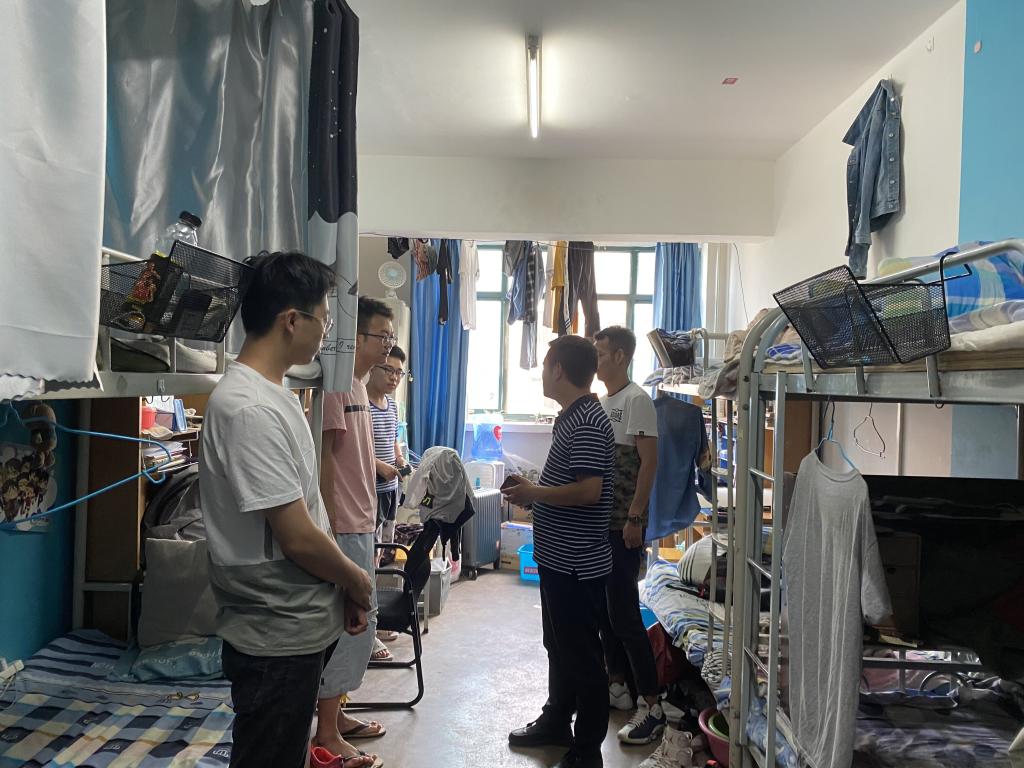7月10日,a片网党委副书记朱毓杰逐一走访学生宿舍,了解学生搬迁准备情况和困难需求,叮嘱学生做好行李打包、个人财务安全等。
