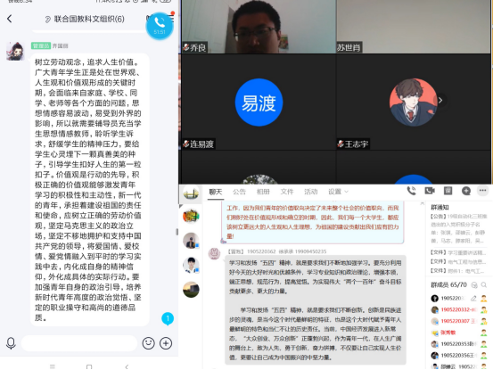 各基层团支部也纷纷开展了各具特色的线上主题团日活动,学习贯彻习近平总书记“五四寄语”,用实际行动诠释青年的担当精神。通过重温入团誓词、奏唱团歌、学习《团章》、学习“三会两制一课”教学视频等环节,加深同学们对团的认识,激发爱国热情;通过理论学习、专题团课、学习座谈等形式开展“习近平新时代中国特色社会主义思想”和十九大精神学习,明确当代青年人的使命,增强责任意识;通过组织青年榜样开展座谈交流,发挥典型示范引领作用,为a片网青年团员更好的学习成长树立榜样;通过分享自己家乡的伟人事迹,丰富团员们历史、文学知识,树立团员们的榜样,激发青年团员们的志气;部分同学还向大家展示了自己蕴含“五四精神”的文章、书法、字画等。