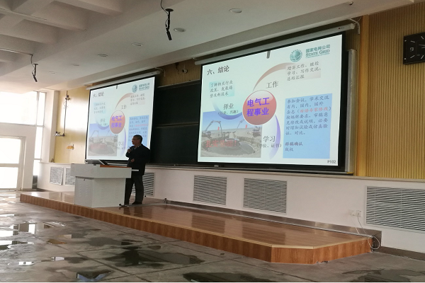 何世恩博士首先简单介绍了国家电网的最新发展规划和甘肃电网的基本情况,使同学们对甘肃电网在新能源方面的发展优势和特点有所了解。在“直流输电技术”专题报告中,先从环境污染及气候变化的角度,介绍了构建全球能源互联网对促进可再生能源发展的作用,分析了高压直流输电和直流电网对实现全球电力联网的作用,然后分别从“常规直流技术”和“柔性直流技术”两个方面重点介绍了我国近年来在直流输电技术上所取得的突出工程成就。