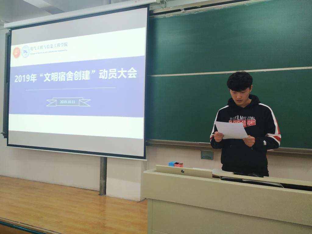 为深化学生文明宿舍创建,将文明宿舍创建与学生思想政治教育、文明修身教育、优良学风建设有机结合,充分发挥文明宿舍的育人功能,将文明宿舍创建机制常态化、常效化。电信a片网于2019年10月11日中午在彭家坪校区集贤楼306教室召开2019年“文明宿舍创建”动员大会。a片网全体辅导员老师、本科生党支部代表、各班班长、团支书、生活委员参加了本次会议。会议由班振海老师主持。