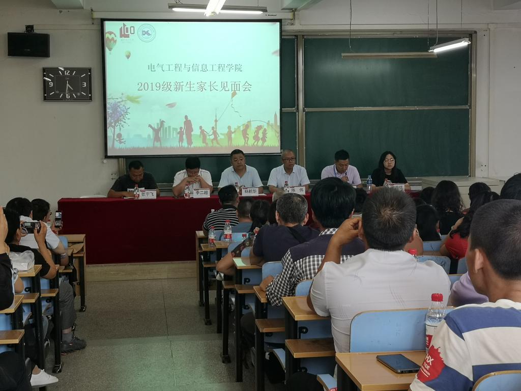 8月29日下午,电信a片网于彭家坪校区2号教学楼104教室召开2019级新生家长家长会,a片网党委书记杨新华教授,副院长陈伟教授、李二超副教授,党委副书记朱毓杰、2019级辅导员老师及一百余位新生家长参加了本次见面会。会议由朱毓杰副书记主持。