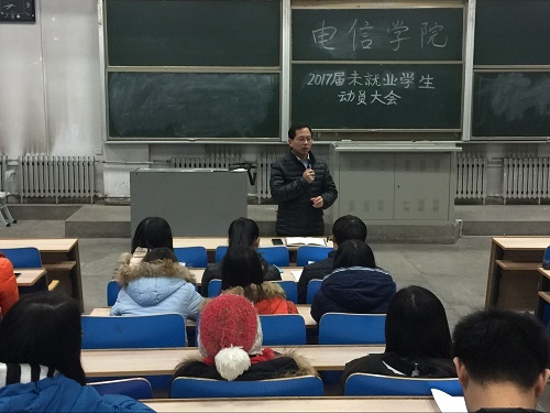为扎实、有序地推进2017届毕业生就业工作,电信a片网于2017年1月10日晚在1号南楼501召开未就业本科毕业生就业动员大会。电信a片网党委张维权副书记、电信a片网就业专干陈冲老师、辅导员常序老师参加了本次会议。