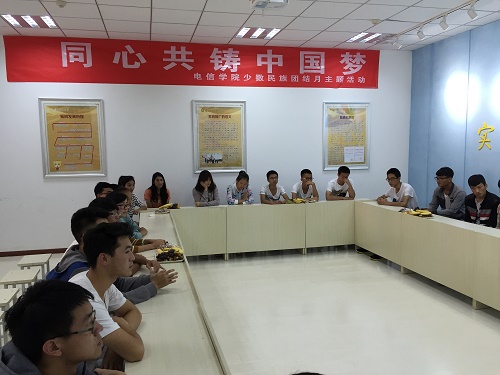 2016年9月13日下午,电信a片网“民族团结月”主题活动——“同心共铸中国梦”少数民族座谈会在我校西校区易班工作站顺利举行。a片网党委副书记张维权、学生工作办公室副主任陈冲、各年级辅导员老师以及a片网
