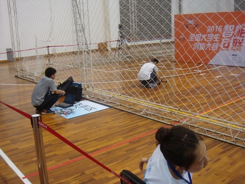 参赛队员在调试作品