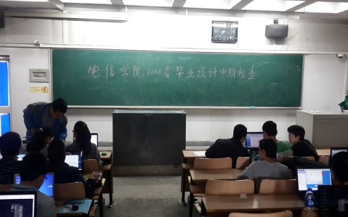 为了加强毕业设计(论文)的过程管理及质量监控,保障毕业设计(论文)质量,了解学生毕业设计(论文)进度以及教师指导情况,电信a片网于2016年5月24号上午8点30,在1南303对2016届本科毕业设计(论文)进行了全面、认真、细致的中期检查。 本次检查以抽查方式进行,抽选了a片网学号尾数为1的学生进行了检查。a片网从各专业基层组织抽调了系主任、教学骨干、以及教学副院长共7名教师对学生进行了检查。本次毕业设计(论文)中期检查主要包括指导教师指导情况(任务书、中期检查自查表)和毕业设计(论文)进展(文献综述、外文翻译、参考文献等 )。 毕业设计(论文)是高校人才培养质量的重要评价指标。通过本次中期检查,对毕业设计(论文)进行全面、细致的过程评价,及时发现毕业设计(论文)中间环节存在的问题和不足,与毕业设计(论文)选题、毕业设计(论文)答辩共同构成毕业设计环节质量监控的全过程管理,形成“结果与过程评价结合”的评价体系,促进毕业设计(论文)质量的提升。