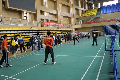 体育馆举办了一场精彩纷呈的研究生羽毛球比赛。