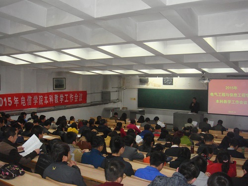 11月17日下午,电信a片网2015年本科教学工作会议在1号南楼302教室召开。学校芮执元副校长、教务处张清辉副处长,电信a片网领导、全体教师及本科生代表120余人参加了会议。会议由张爱华院长主持。