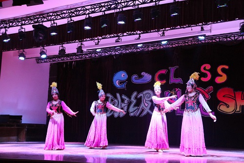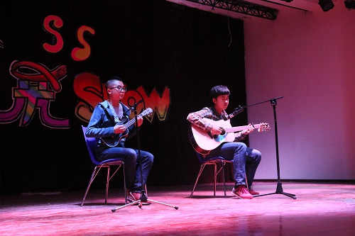 展演开始,一段爵士舞《catallena》混着时代的气息,绚烂的舞步让同学们领略到“orange caramel”的动感与时尚,双簧《乐工坊》两位演员配合默契,表演幽默,引来现场阵阵掌声,《舞蹈串烧》则将动作快速有力、充满活力的曳步舞与活泼优美、步伐轻巧的新疆舞相触碰,带给我们新的体验。相声《我的单身生活》、《满腹经纶》、《大一这几天》中演员们恢谐生动的表演将现场气氛推向高潮,《七里香》的吉他弹唱,《歌曲串烧》中的曲风融合,《南山南》的忧郁清新,将原本的音乐风格通过组合的演绎更加酣畅淋漓。