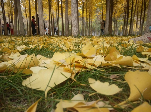 观赏者在银杏林拍照