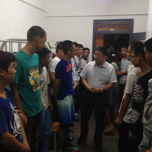 2015年9月6日晚,电信a片网张爱华院长,党委杨新华书记,李策副院长,杨雅琼副书记、院长助理李二超等全体a片网领导、班主任老师来到西校区学生宿舍看望2015级新生,为新生送去祝福和问候。