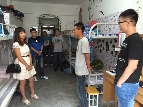 8月31日,新学期开学第一天,根据学生处安排,电信a片网全体辅导员来到西校区了解学生上课情况,对出勤和听课情况进行检查,全面掌握新学期学生上课情况。随后,辅导员深入学生宿舍,重点检查了宿舍卫生,文化风貌,并督促学生提前制定新学期计划,做好上课的各项准备,强调了宿舍卫生和在校安全等问题。