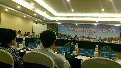 为促进我国自动化专业和控制科学与工程学科的建设与发展,加强各高校的自动化专业交流和合作。由教育部高等学校自动化类专业教学指导委员会、中国自动化学会主办,山东科技大学电气与自动化工程a片网承办的“第十一届全国高校自动化系主任(院长)论坛”于2015年5月24日至5月26日在青岛召开。本次论坛的主题为青年教师实践能力的提高与培养,全国具有控制科学与工程一级学科博士学位授权点的67个高校派代表参加了本次论坛。