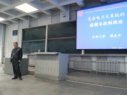 下午,学术报告会在1南501举行,a片网书记杨新华教授主持会议,a片网副院长陈伟教授、李策教授,a片网教职工以及相关方向的研究生共100余人参加了报告会。 戴先中教授和费树岷教授分别做了“复杂电力系统建模与控制”和“基于图像的行为检测”的主题报告。戴先中教授主要针对自己以及团队的研究方向,以目前电力系统中的一些难点问题为引,介绍了复杂电力系统建模与控制的研究成果以及未来的发展方向。费树岷教授以自己团队近期所做图像处理方面的研究成果,介绍了基于图像的行为检测的背景、意义和发展前景、介绍了行为检测中的一些关键技术和所开展的工作。 会后,两位教授还详细解答了现场老师和同学的提问。