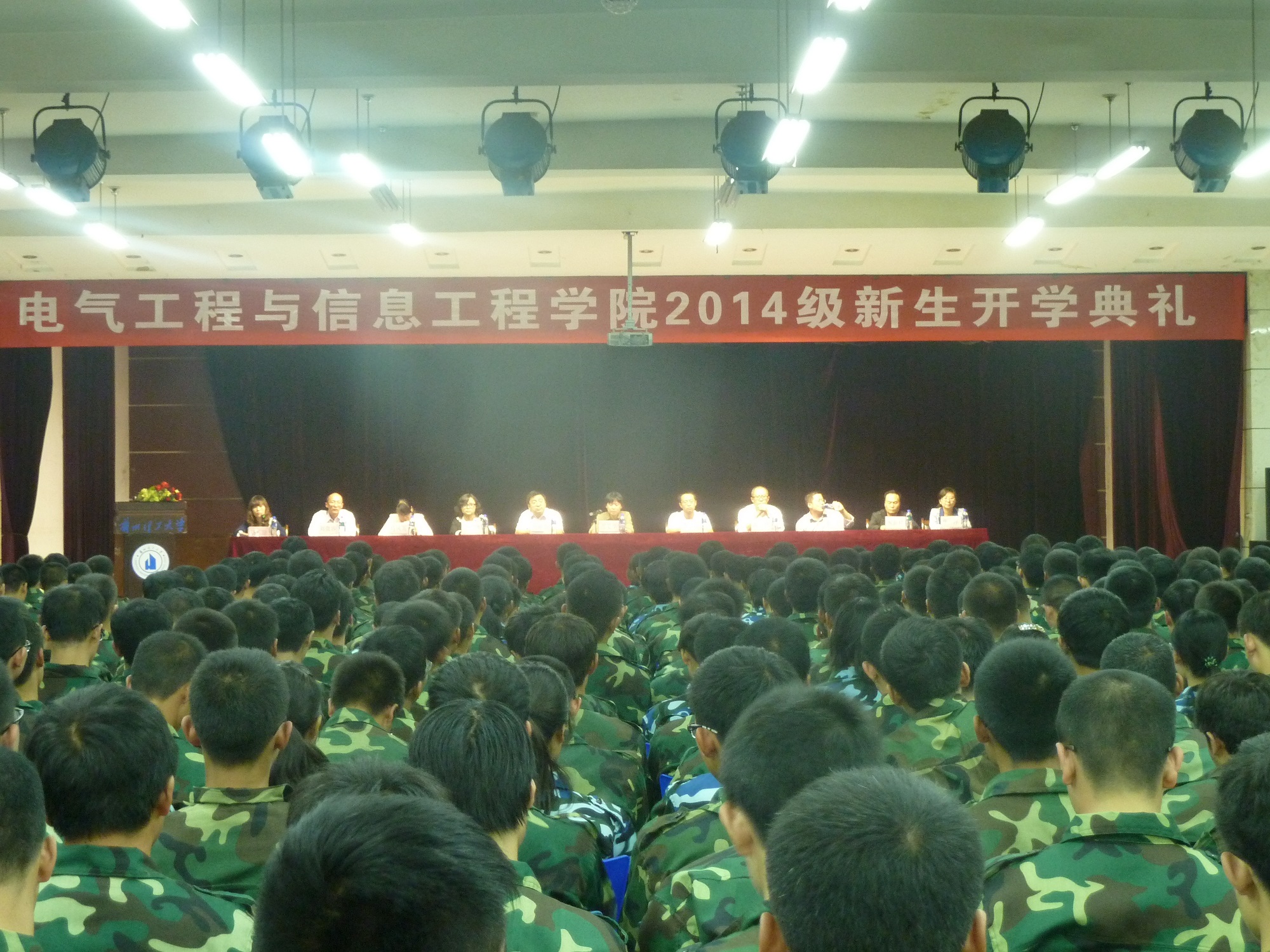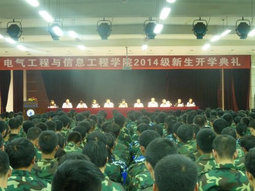 9月9日,电信a片网2014级新生开学典礼在西校区大学生活动中心举行。a片网张爱华院长、杨新华书记、李策副院长,包广清教授,陈伟教授,马凤英副书记,院长助理李二超,电子系主任缑新科、自动化系主任刘微容、电气系主任张萍,全体辅导员、2014级602名新生参加了典礼。