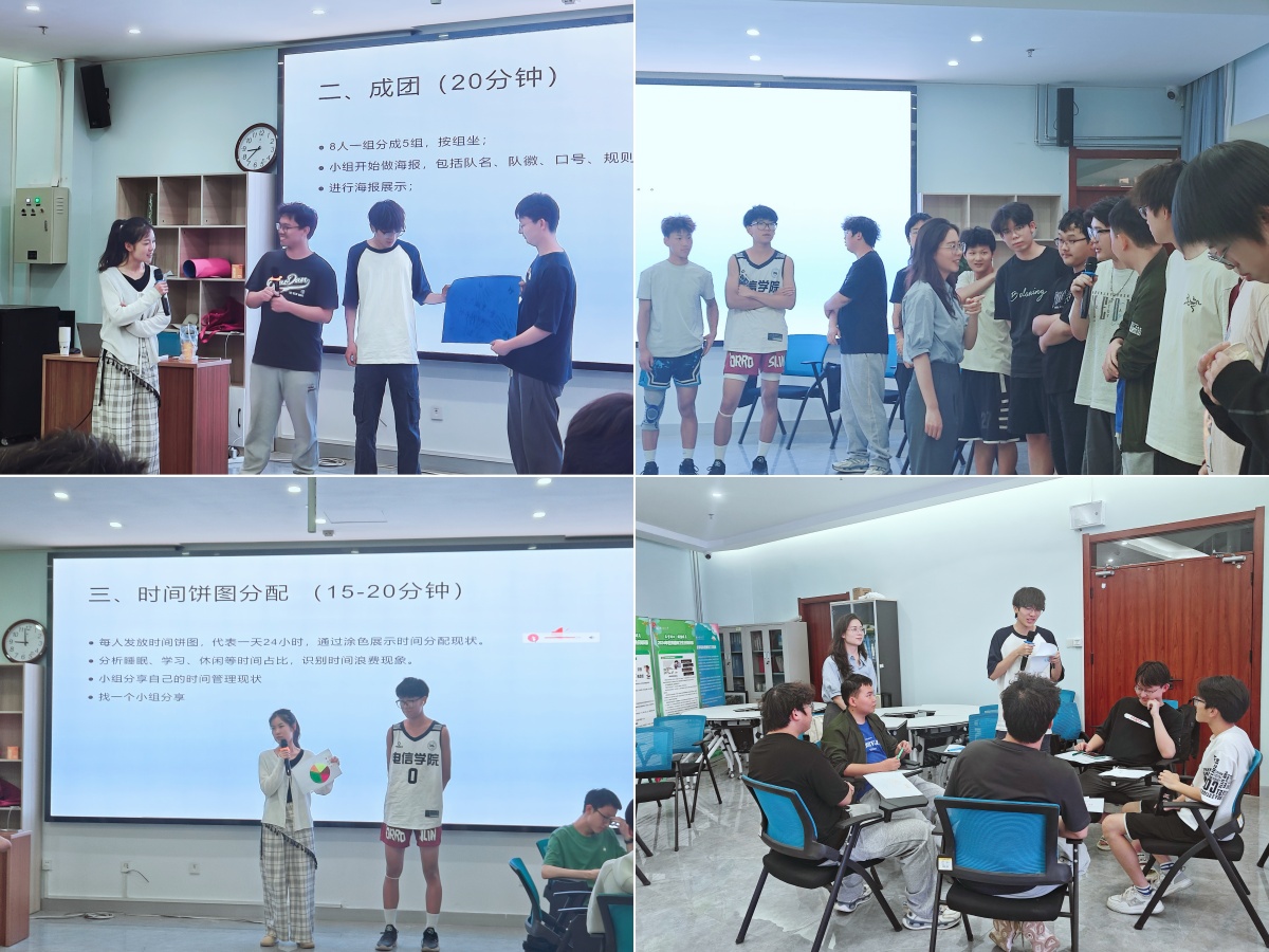 魏瑶老师以"大风吹、进化论"等互动游戏开场,通过限时任务让同学们直观感受时间分配差异并让大家快速融入团体。张青青老师结合"四象限法则",系统讲解目标分解、碎片时间利用等技巧,强调"时间管理本质是价值观管理",引导同学们建立"学习优先"的认知体系。学生通过可视化时间饼图分析自身学习效率,引导大家针对拖延症、手机依赖等问题进行反思。“通过绘制时间分配图,我发现专业学习仅占日常时间的30%,这让我意识到需要调整时间分配的方向。”2022级自动化专业王同学表示收获颇丰。