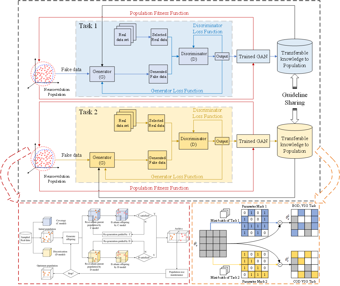 针对复杂工业过程软测量建模中数据稀缺且分布不均的瓶颈,该研究设计了一个两阶段元启发式训练框架(MVSG-GS),系统性地将对抗学习与进化优化相结合,将全局约束满足(通过进化优化)与局部特征对齐(通过对抗学习)解耦,并通过子网络之间的跨任务知识传播实现多目标训练过程的协同优化,显著提升了软测量预测精度与泛化能力,为数据驱动工业智能优化提供了新方法。