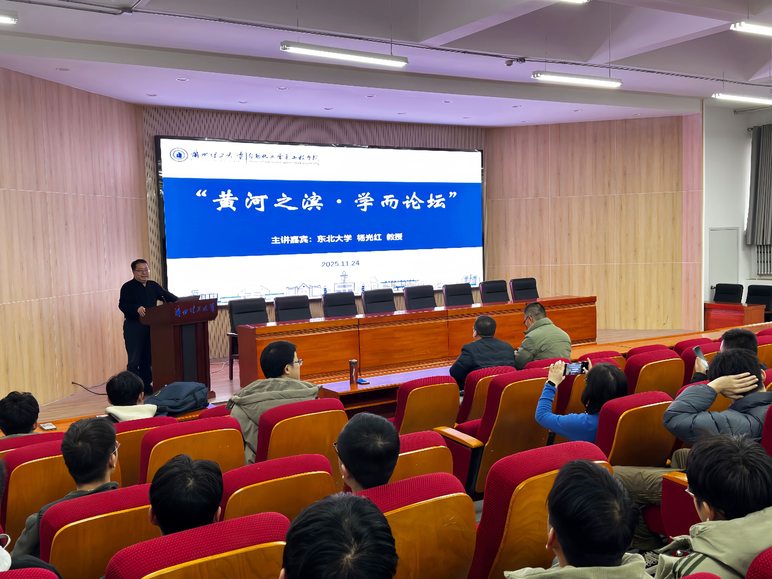 杨光红教授作了题为“多智能体系统的可靠协同定位方法研究”的学术报告,系统阐述了多智能体系统协同定位面临的核心挑战,并重点介绍了其团队在该领域的一系列创新理论与方法。该研究为复杂场景下的协同定位提供了清晰的理论依据与可行的技术路径。会后,专家和现场师生进行了深入交流。