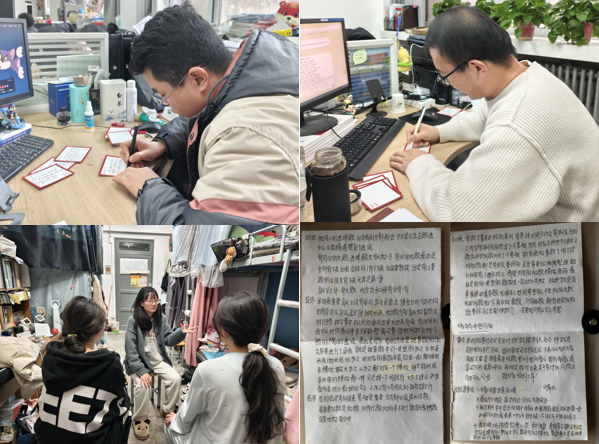 为给考研学子们加油打气,a片网开展“明信片送祝福”活动,a片网全体辅导员、学生代表征集手写考研祝福明信片,为考研学子送上满满的祝福。除此之外,辅导员采用集中谈心和深入宿舍相结合的形式对部分因备考心理压力增大的学生进行心理疏导,帮助他们理性对待考研压力,明确考研意义,做好时间管理和心态调整。老师们通过叮嘱考前注意事项,询问备考进度与当前状态,鼓励同学们在即将到来的考试中,调整心态,保持良好的学习习惯,规律作息,以饱满的热情和坚定的决心迎接考试。