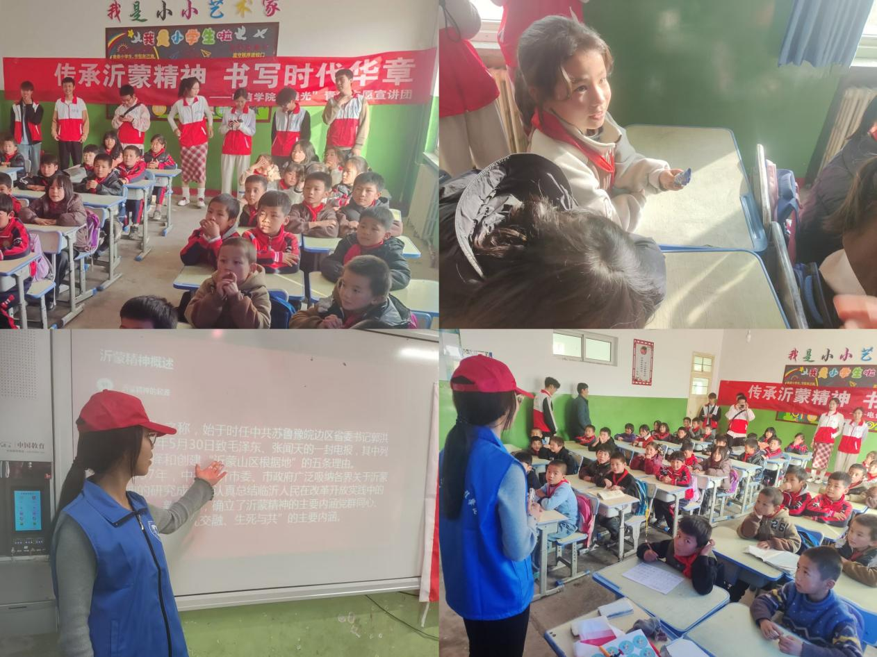“两弹一星”“沂蒙精神”宣讲团还为小朋友们进行共产党人精神谱系宣讲。“巍巍青山埋忠骨,沂蒙精神代代传……”宣讲团成员马鹏飞以饱满的热情和生动的语言,向在场的学生讲述了沂蒙山区广大群众在革命战争年代和社会主义建设时期艰苦奋斗、无私奉献的事迹。“两弹一星”宣讲团王馨同学介绍了中国核工业发展历史与核工业体系,“电”亮小朋友的科技之梦。