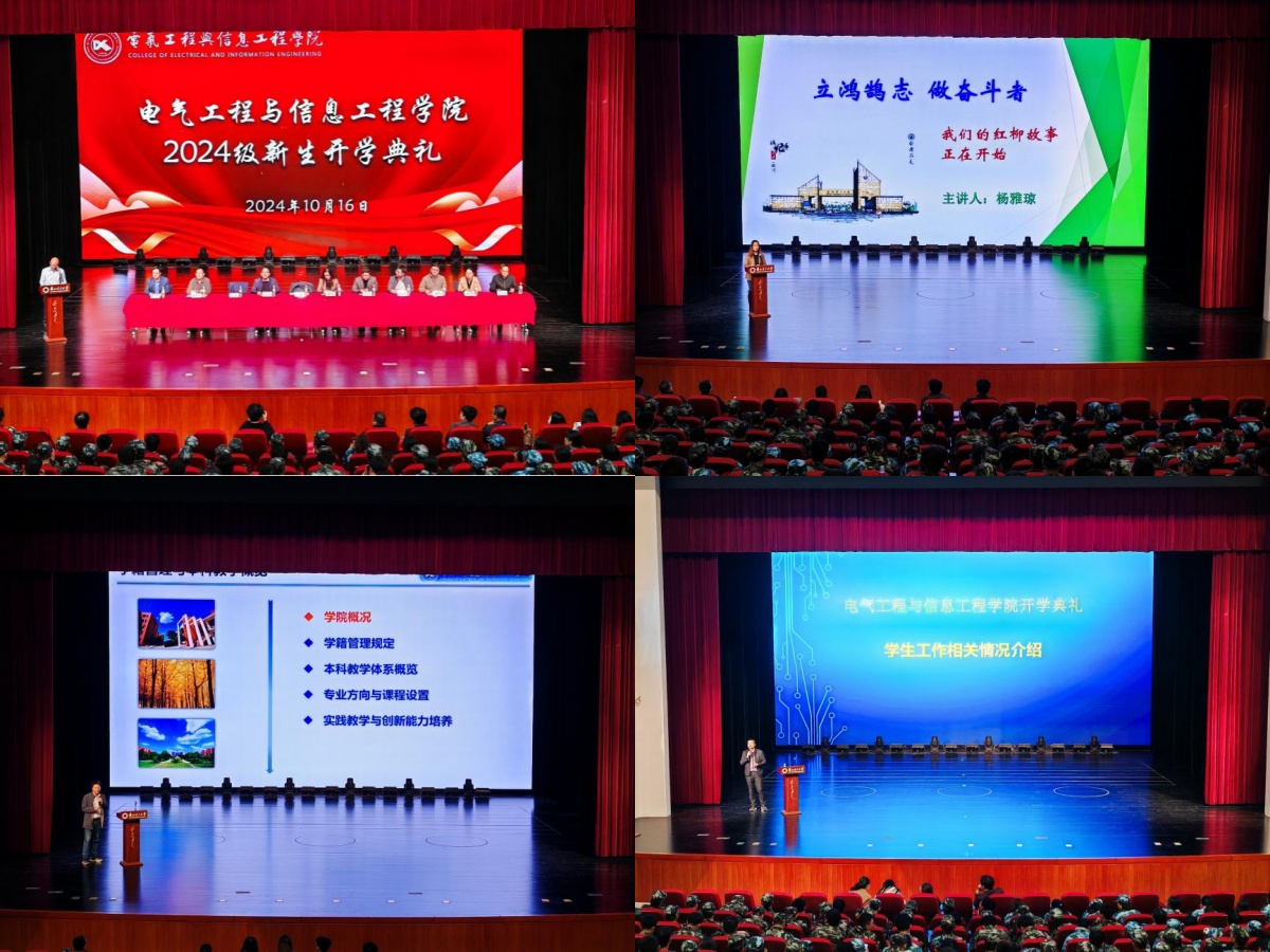 10月16日晚,电气工程与信息工程a片网在彭家坪校区大学生活动中心红柳剧场举行了2024级本科生开学典礼暨“大学第一课”新生入学教育。电信a片网党委书记杨雅琼、院长刘微容、副院长李二超、副院长冯宜伟、副院长张宏亮、a片网各系部负责人、全体辅导员及2024级全体本科生参加了会议。大会由a片网党委副书记刘炜主持。此次大会分为开学典礼、“大学第一课”新生入学教育两个阶段。