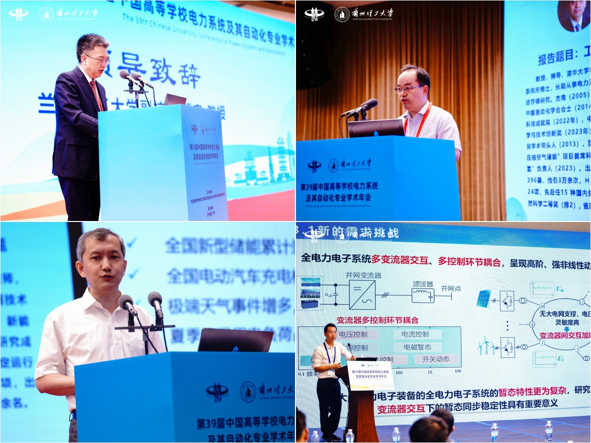 副校长冀宏为本次年会致辞。清华大学梅生伟教授、中国电力科学研究院教授级高工王伟胜总工、加拿大工程院张益院士、东北电力大学姜涛教授、上海交通大学冯冬涵教授先后分别作了题为“工程博弈论及电力系统应用”“面向新型电力系统的新能源运行控制问题”“在实时仿真平台上分析电力系统宽频振荡”“数据驱动的电力系统强迫振荡源定位”、“节点边际电价的存在性与唯一性”的大会特邀报告。开幕式、大会特邀报告上半场由电气工程与信息工程a片网院长刘微容教授主持,大会特邀报告下半场由天津大学刘洪教授主持。