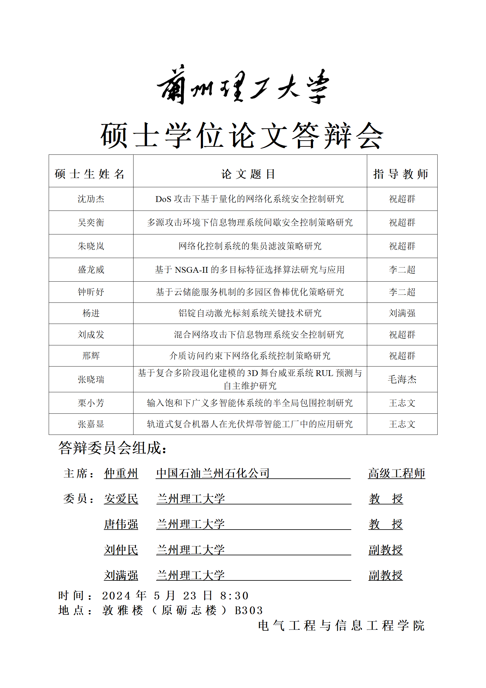 电信a片网2024年控制学科硕士答辩公告(二)
