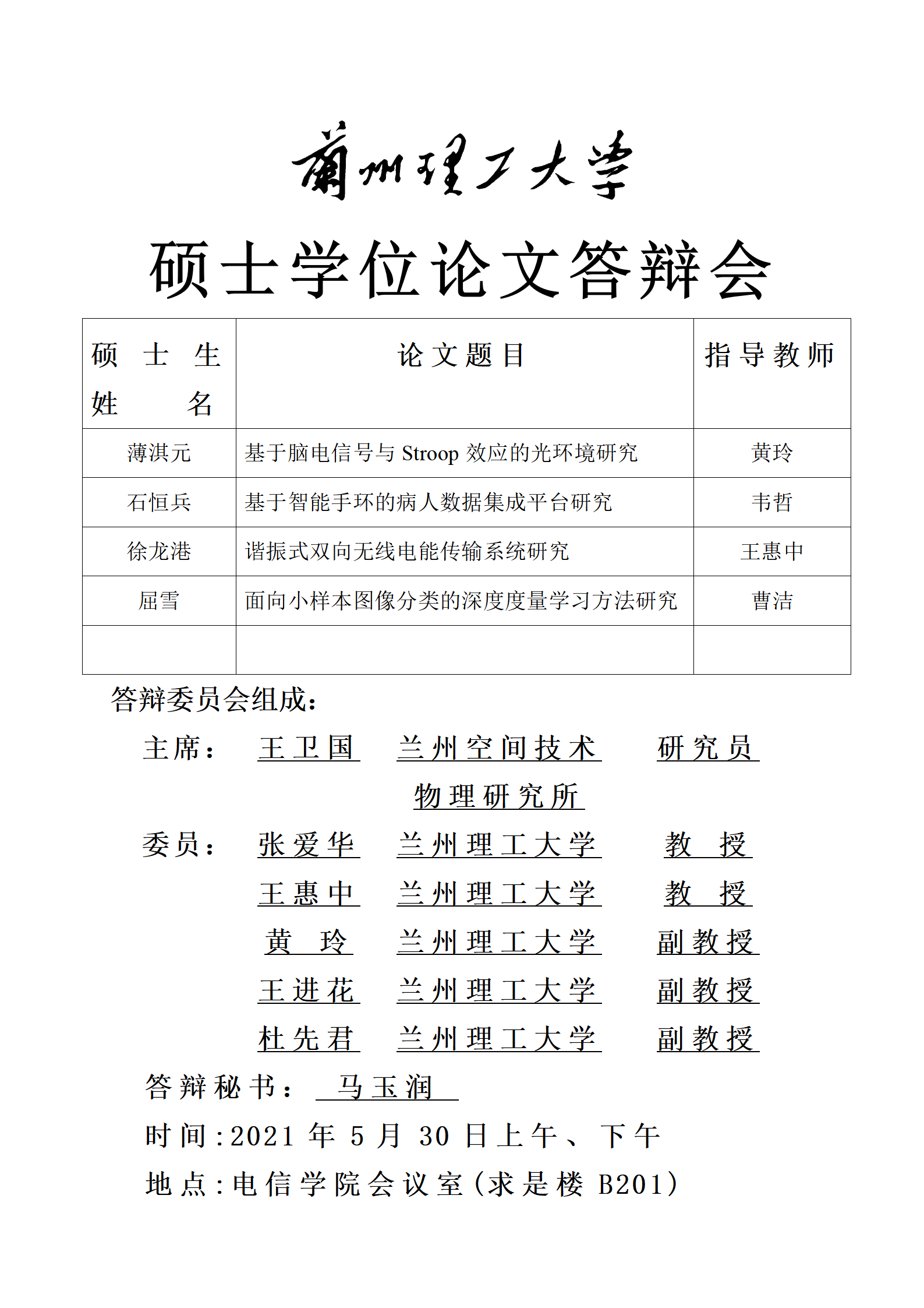 电信a片网电子科学与技术学科专业学位硕士研究生毕业答辩公示(电子专硕5月30日上午、下午)