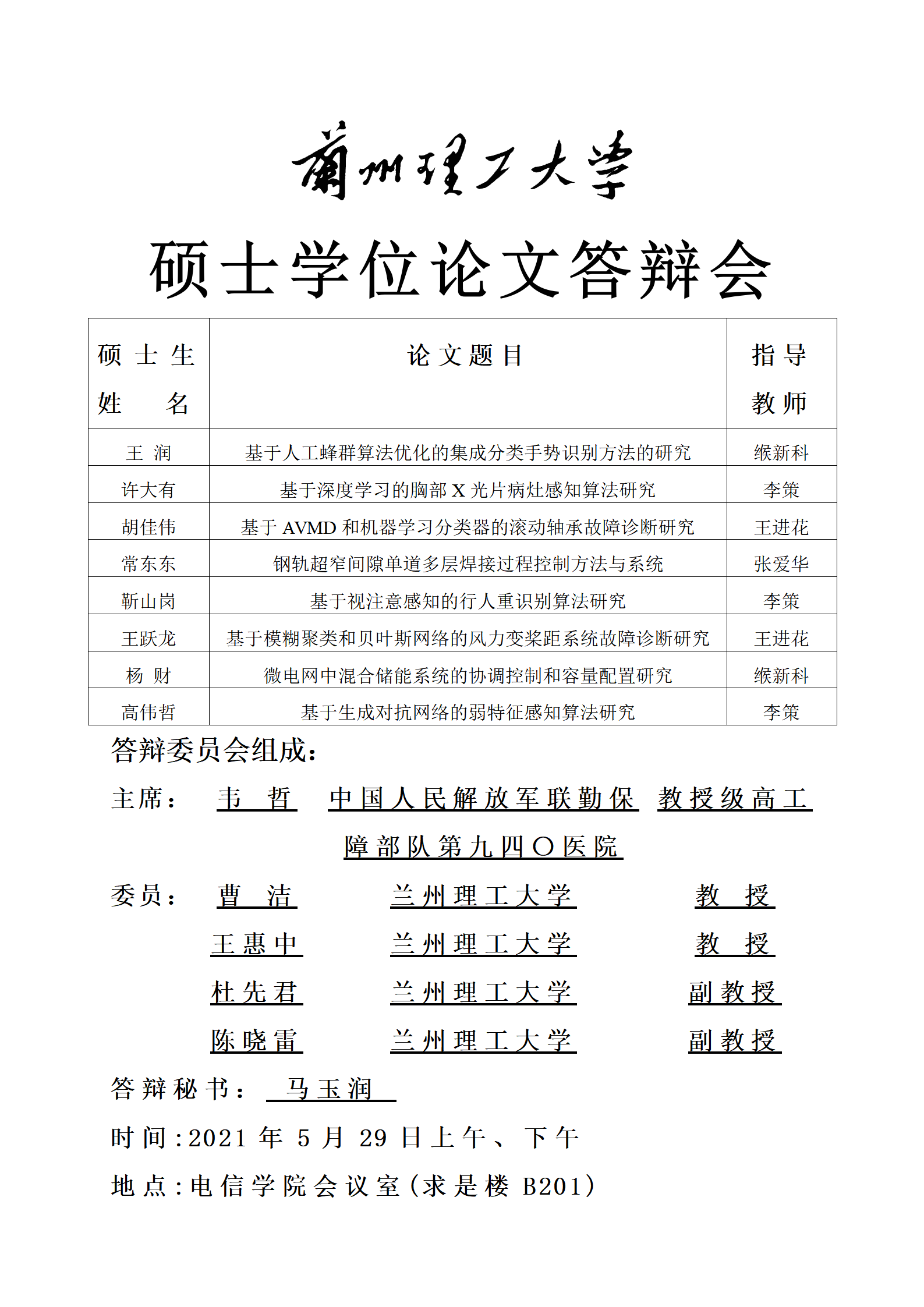电信a片网电子科学与技术学科专业学位硕士研究生毕业答辩公示(电子专硕5月29日上午、下午)